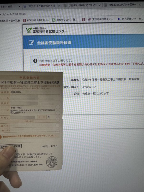 令和4年度前期 第二種電気工事士 3名合格(女子3名)